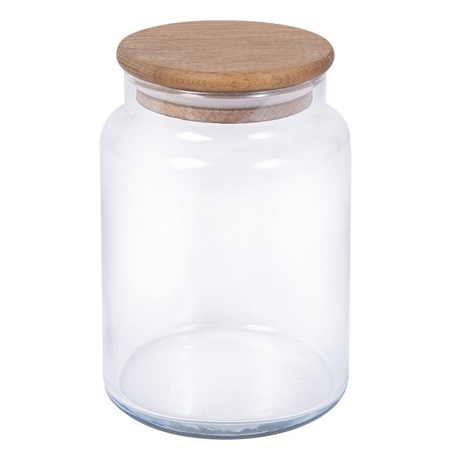 Банка HEREVIN з дерев’яною кришкою 0.89 л виготовлена з високоякісного скла та підходить для зберігання різних харчових продуктів. Кришка міцно прилягає та захищає продукти від потрапляння вологи та сторонніх запахів. Стильний дизайн ідеально впишеться в будь-який інтер’єр кухні.