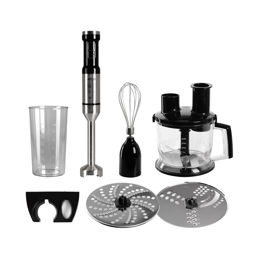 Завдяки металевому ножу-подрібнювачу занурювальний блендер ERGO EHB 9500 можна використовувати в роботі з дуже гарячими продуктами, включно з супами, пюре й соусами. За допомогою вінчика можна збивати й змішувати рідкі продукти, а декілька спеціальних насадок та одразу дві чаші з кришкою місткістю 0,6 л і 1,5 л дозволяють робити деруни, шинкувати, нарізати скибочками й дрібно натирати овочі й фрукти, а також змелювати й подрібнювати сухарі, горіхи тощо, працюючи одночасно з декількома типами продуктів.