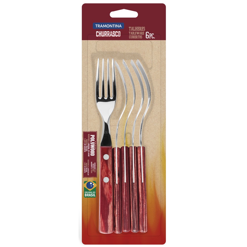 Набір виделок для стейків Tramontina Polywood з 6 виделок для стейку пропонує перетворить ваш стіл на місце для насолоди справжнім барбекю.