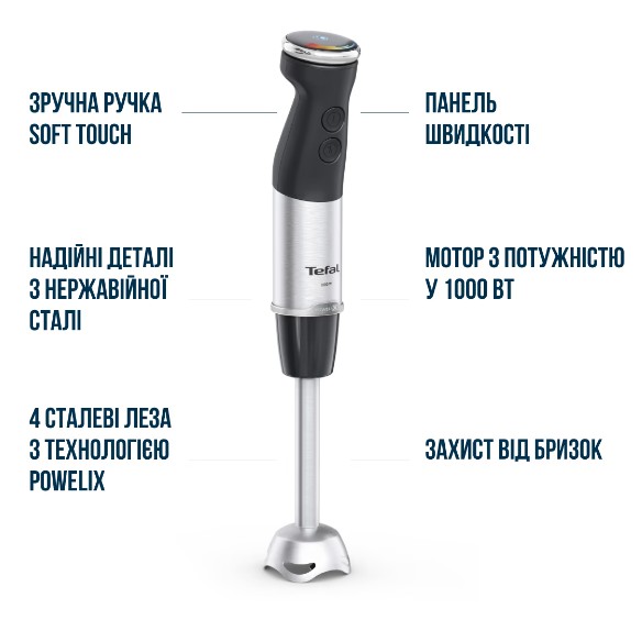 Тип: Занурювальний блендер Потужність: 1000 Вт Кількість швидкостей: 20