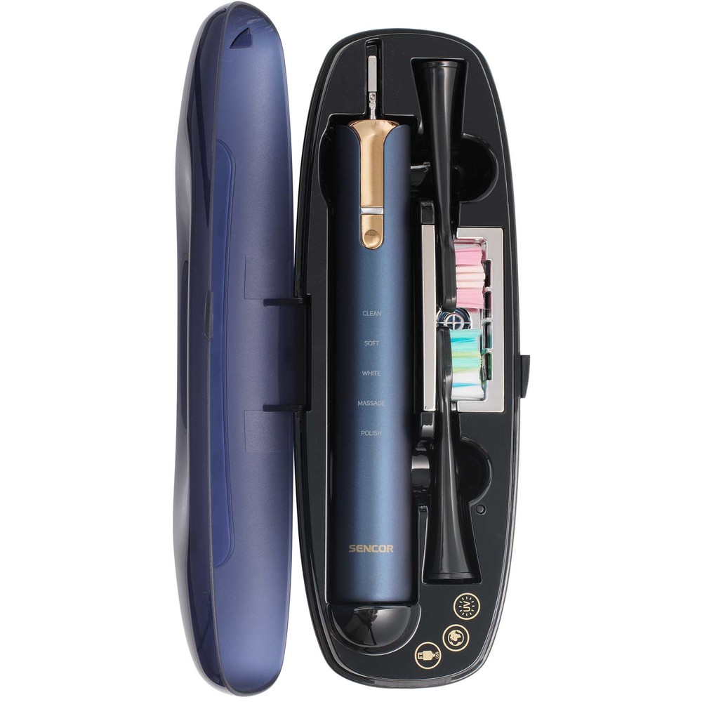 - Футляр: Містить 1 корпус щітки, 2 чистячі головки або 1 чистячу головку і 1 зубну пасту