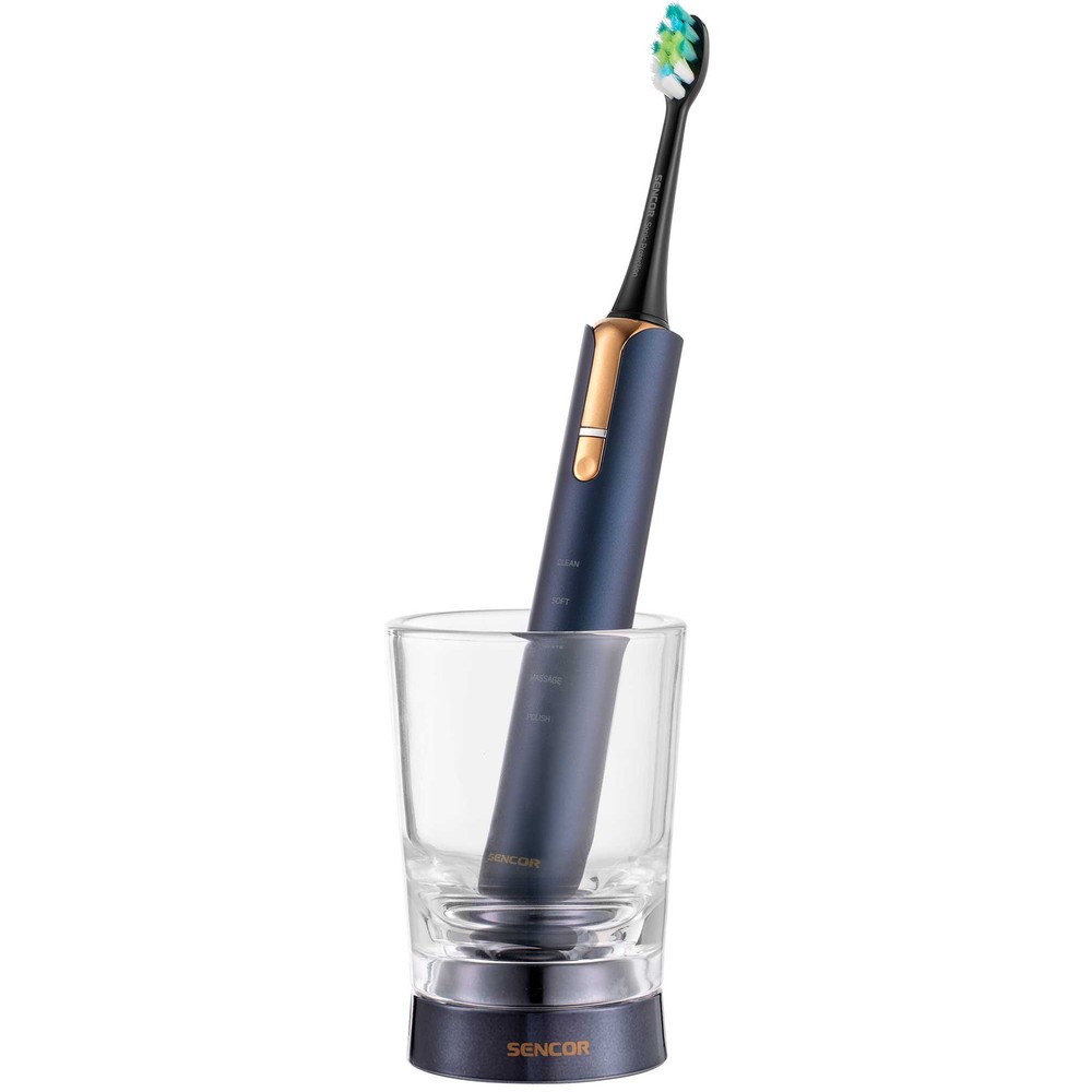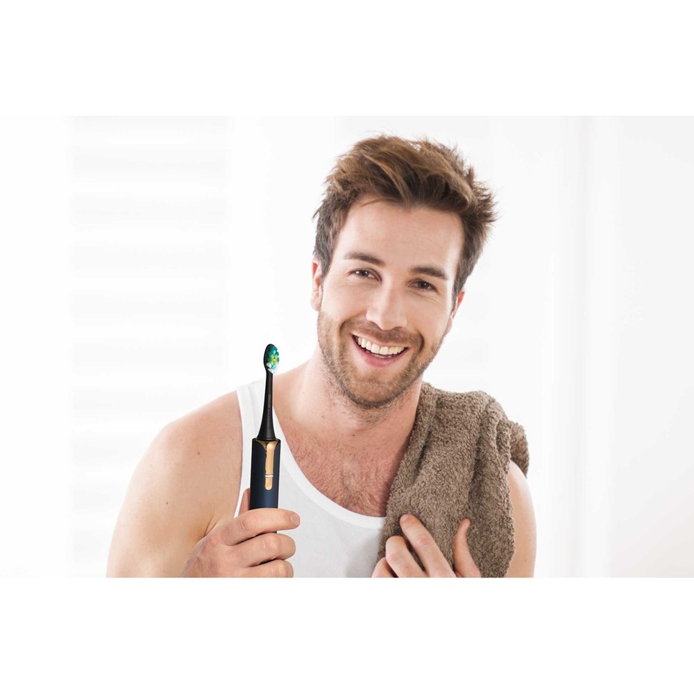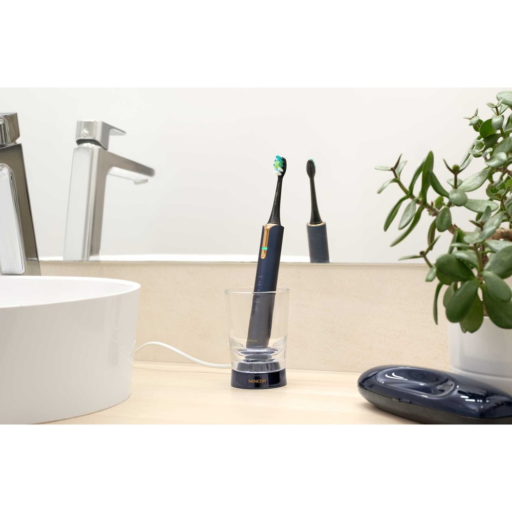- Комплектація: 1 корпус щітки, 2 головки, 1 індукційний зарядний пристрій, 1 склянка, 1 дорожній футляр з USB-конектором і УФ-стерилізатором