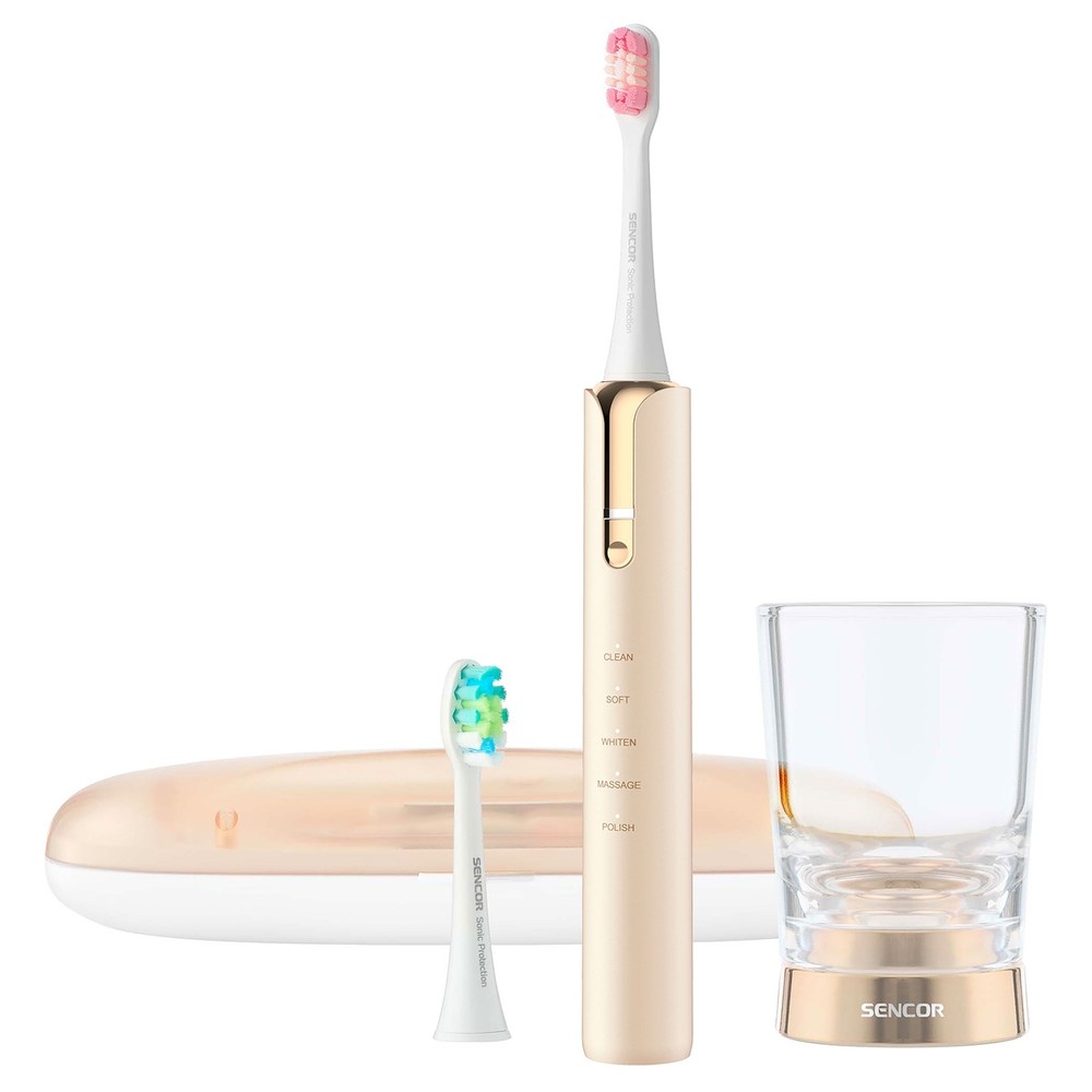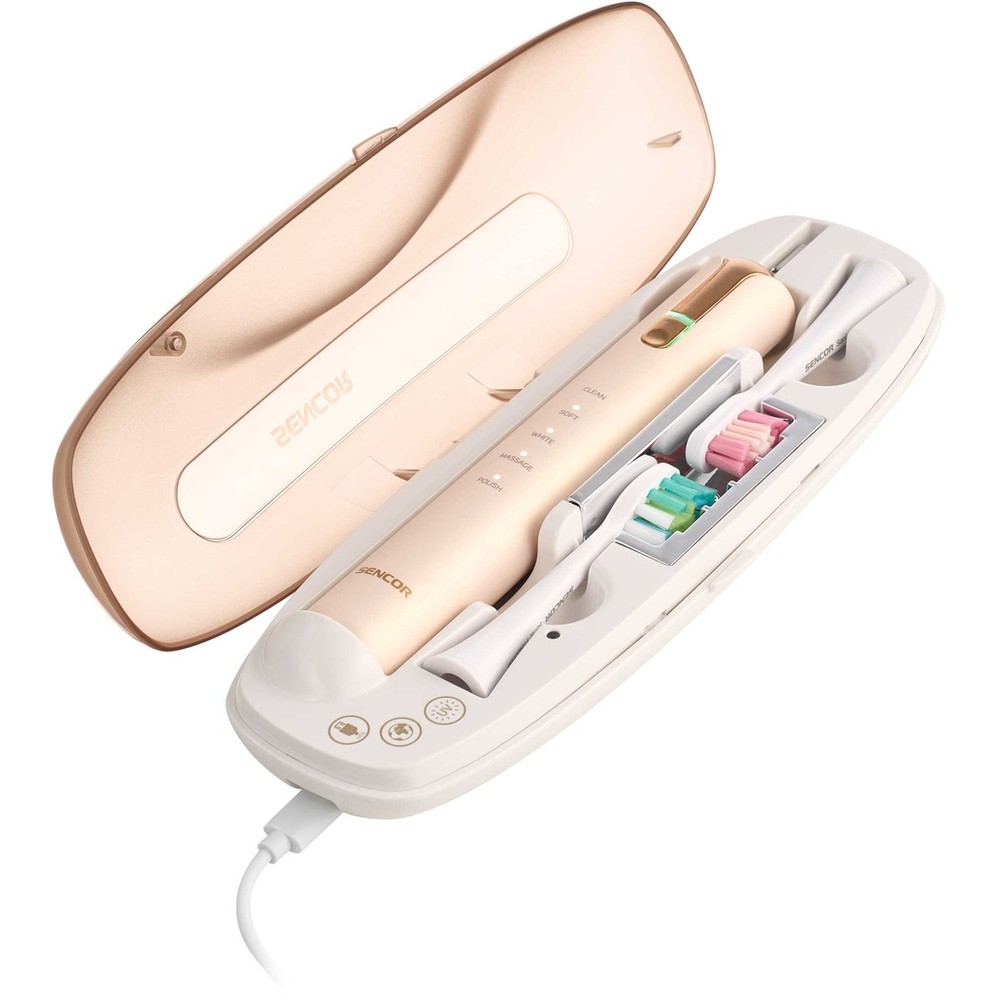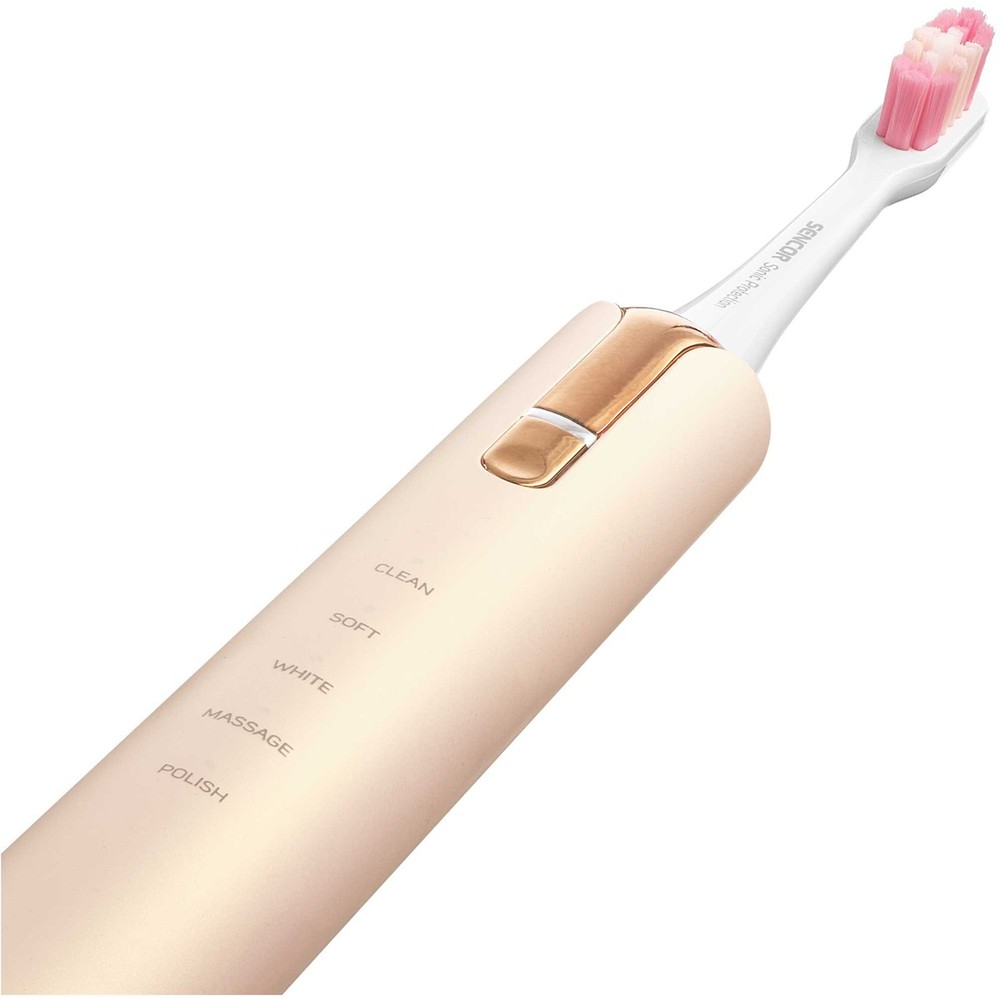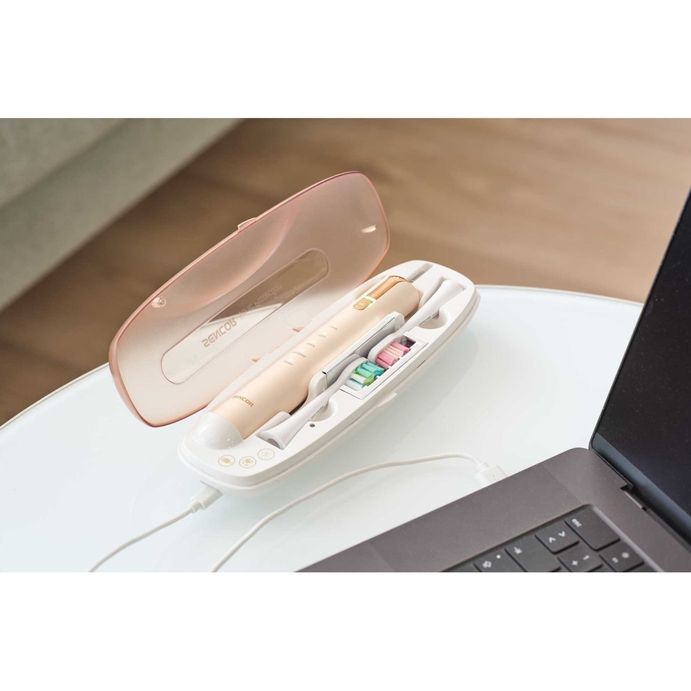 - Комплектація: 1 корпус щітки, 2 головки, 1 індукційний зарядний пристрій, 1 склянка, 1 дорожній футляр з USB-конектором і УФ-стерилізатором