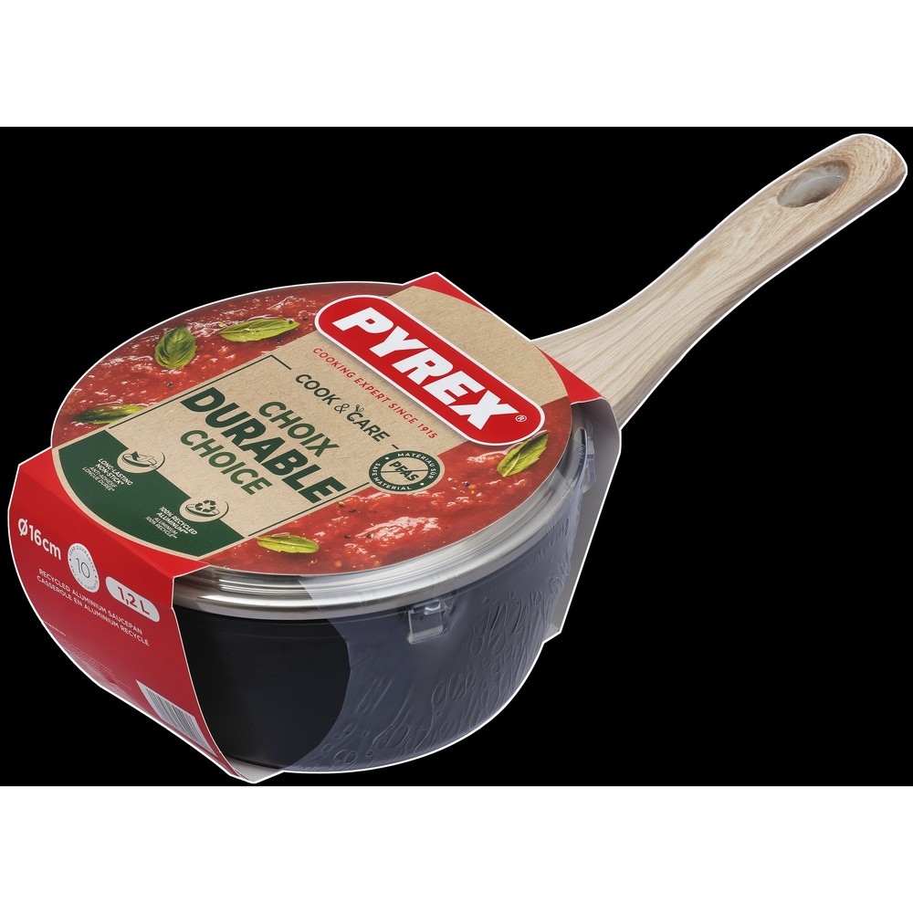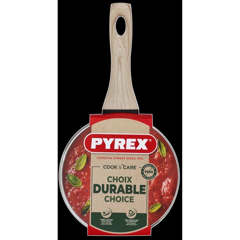 Pyrex Cook&Care – це серія посуду, яка поєднує в собі турботу про ваше здоров’я та навколишнє середовище. Зроблений з переробленого алюмінію, він має міцне керамічне покриття Sol-Gel, що не містить шкідливих PFAS. У 2 рази стійкіший до подряпин і зношування ніж звичайні покриття. Cook&Care підходить для всіх типів плит, включаючи індукційні.