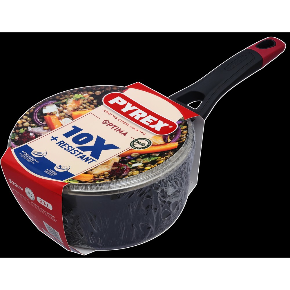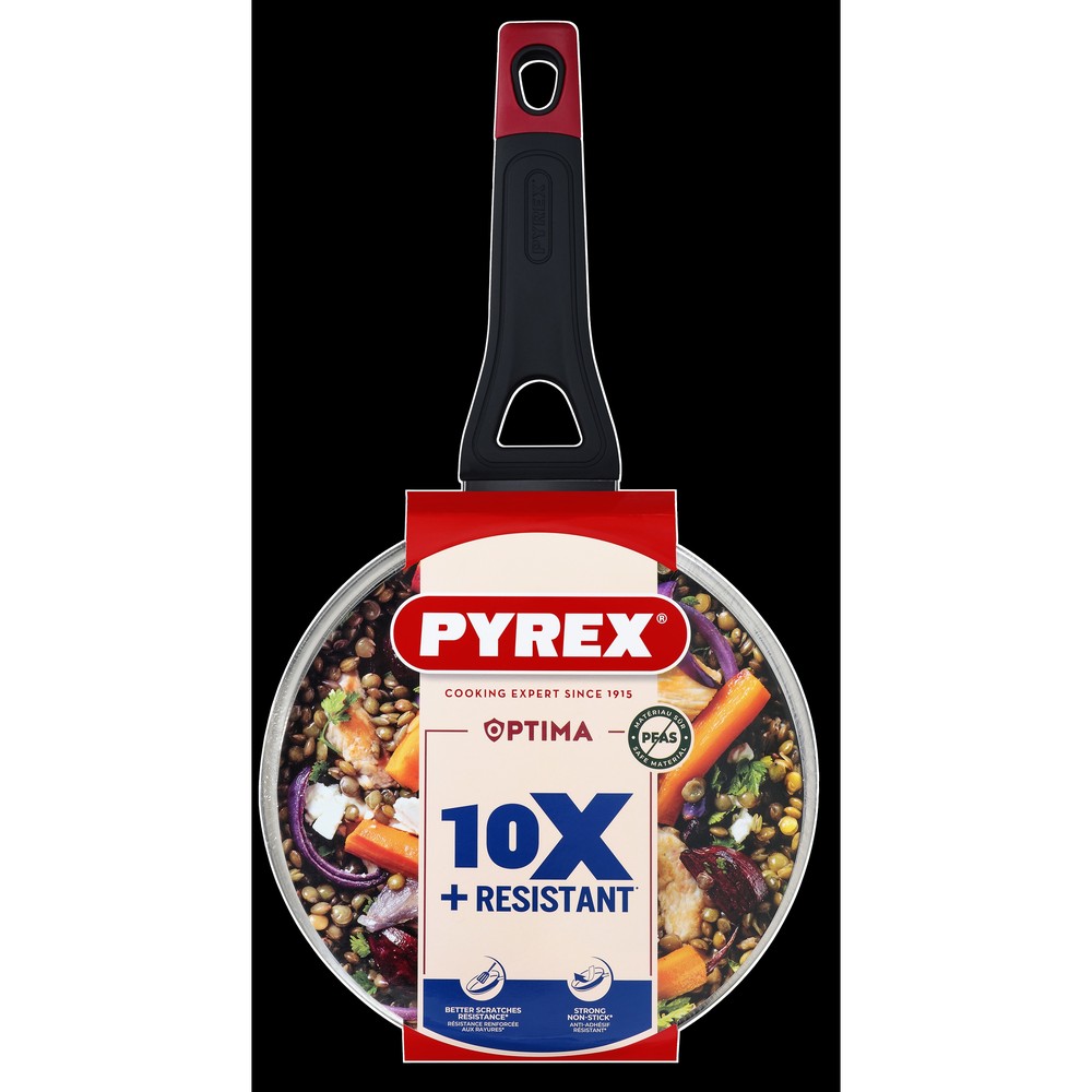 Серія Pyrex Optima – це посуд з кованого алюмінію з міцним антипригарним покриттям Whitford Xylan+. Ексклюзивна Y-подібна ручка з ергономічним дизайном і soft touch покриттям забезпечує комфорт та безпеку використання. Яскравий силіконовий акцент додає стилю. Підходить для всіх типів плит, включаючи індукційні.
