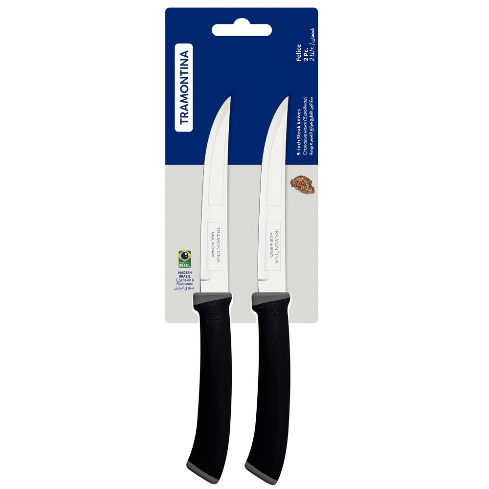 Ножі серії FELICE – ідеальні компаньйони у ваших щоденних кухонних справах. Високоякісна нержавіюча сталь леза, надійні та ергономічні поліпропіленові ручки, що витримують високі температури – ці властивості забезпечують довговічність використання, поєднану з винятковою силою розрізання харчових продуктів. Ручки представлені в класичних чорному та синьому кольорах. Ножі FELICE добре витримують миття в посудомийній машині. Вони створені, щоб максимально спростити вашу кухонну рутину!