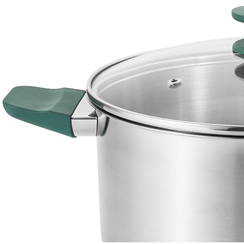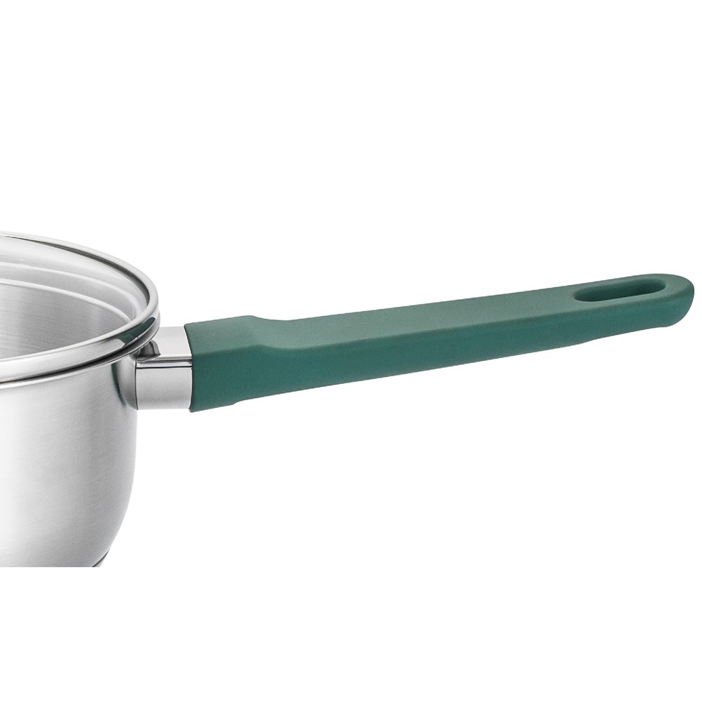 - Кришка з термостійкого скла з отвором для випуску пари та металевим обідком для оберігання від сколів
