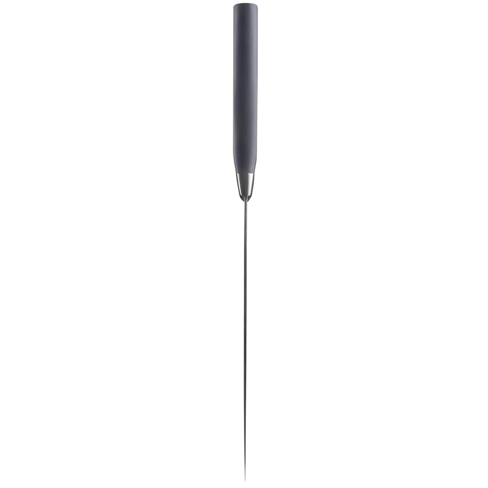 - Ергономічна ручка з бакеліту зі вставками з нержавіючої сталі, що вказують на тип ножа