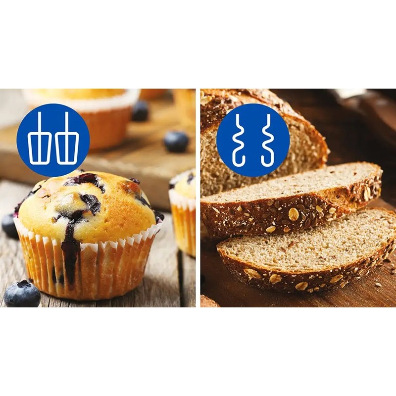 Конічна форма вінчиків гарантує рівномірне насичення тіста повітрям, створюючи легку та однорідну текстуру. Ергономічна конструкція дозволяє легко й інтуїтивно встановлювати насадки, а після використання вони від’єднуються одним натисканням кнопки. Такий міксер стане незамінним інструментом на вашій кухні, даруючи стабільний результат і комфорт у використанні.