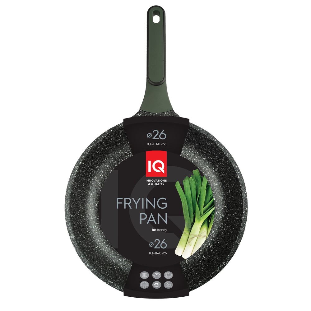 Сковорода Be Trendy від IQ – універсальний інструмент для приготування і розігрівання найрізноманітнішої їжі. Виготовлена з литого алюмінію, сковорода є міцним посудом зі швидким і рівномірним нагріванням, а довговічне антипригарне покриття Xylan від Whitford дозволяє користуватися практично будь-якими аксесуарами, зокрема з металу.