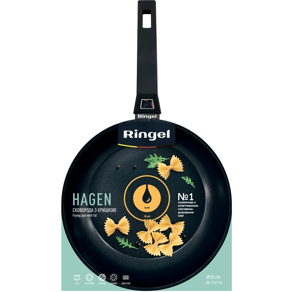 Сковорода Hagen Діаметр: 24 см Висота борту: 4.7 см Матеріал: алюміній Наявність кришки: такRINGEL – бренд високоякісного посуду й аксесуарів для здорової смачної їжі! Торгова марка RINGEL – приклад кращого досвіду європейських виробників посуду та вміння забе…