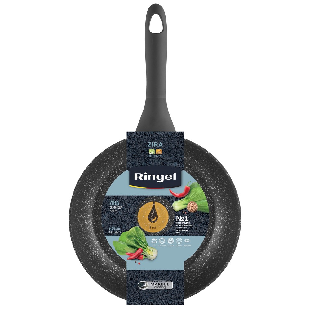Сковорода Zira від Ringel – універсальний гаджет для приготування і розігрівання найрізноманітнішої їжі. Виготовлена з потовщеного високоякісного алюмінію, 3,2 мм ця сковорода є міцним посудом зі швидким і рівномірним нагріванням. Багатошарове антипригарне покриття забезпечить можливість готувати страви з використанням мінімальної кількості олії.