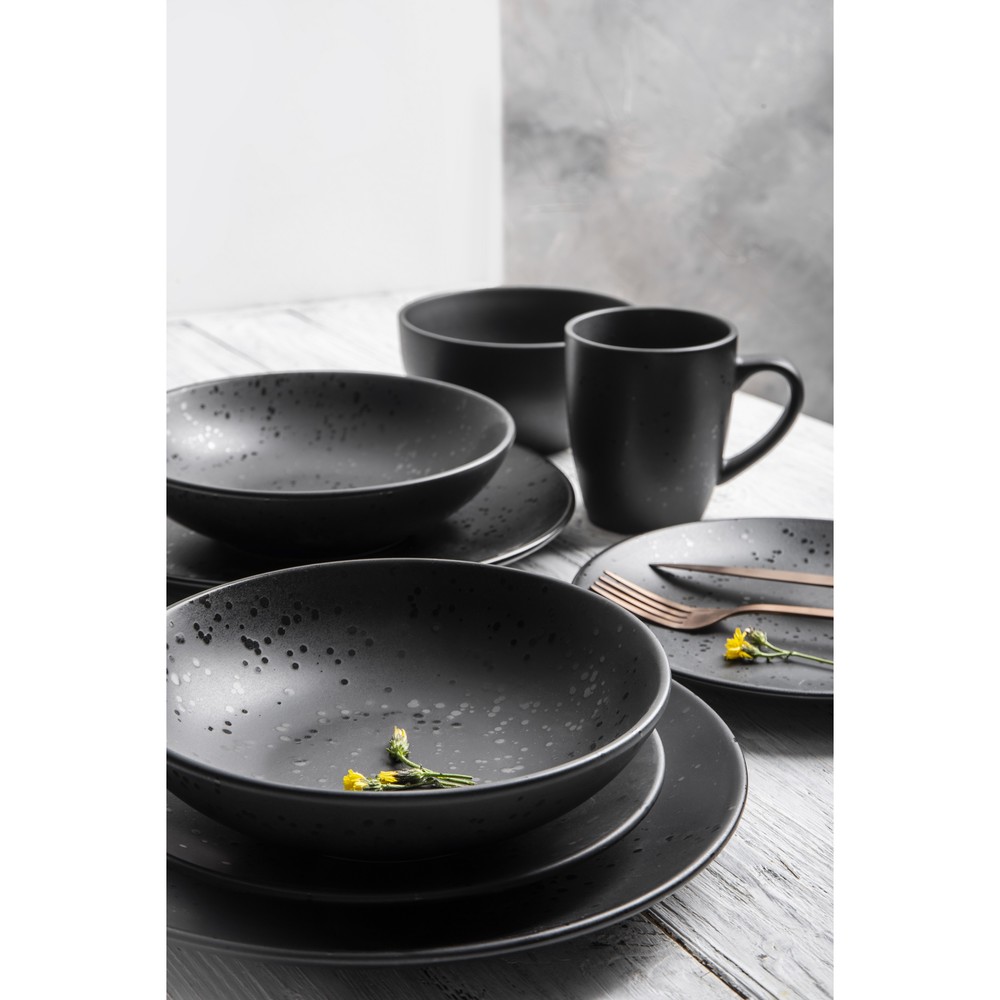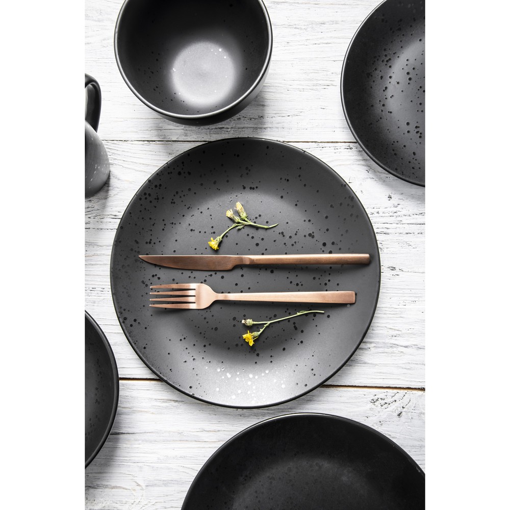 Застосовуючи високоякісну кераміку, що відома своєю міцністю і тривалістю використання, посуд з серії MEKKANO гарантує довготривалу якість. Його матове покриття, прикрашене глянцевими краплинами, створює унікальний і незвичний дизайн, який додає посуду особливого стильного вигляду.