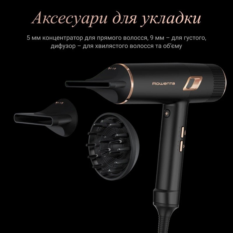 Фен, дифузор, 2 концентратори (5 мм і 9 мм), бокс для зберігання, інструкція, гарантійний талон