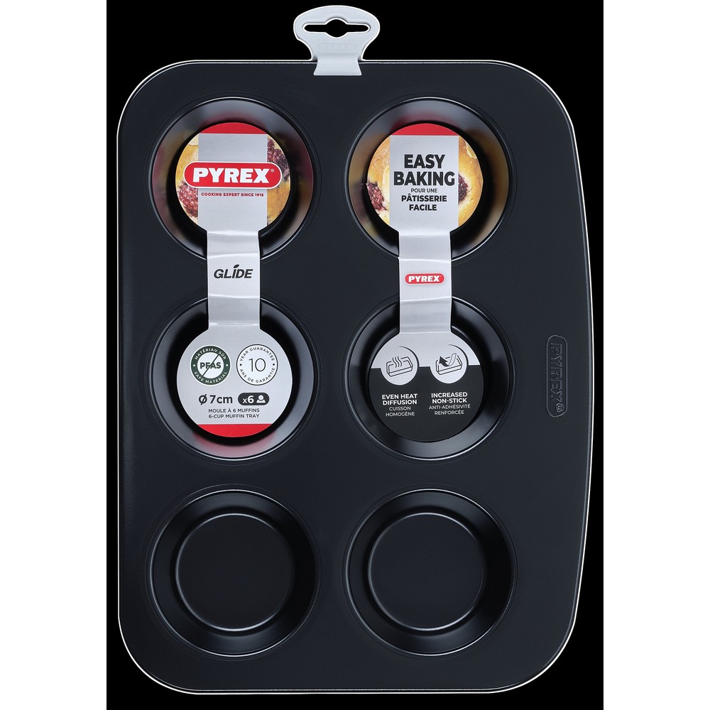 Форма Glide Кількість мафінів: 6 шт Матеріал: вуглецева сталь Форма: прямокутнаУ металевих серіях ТМ Pyrex, компанія зберегла ключові характеристики металевого посуду, такі як: легкість, зручність зберігання, якісне антипригарне покриття, і додала практичний д…