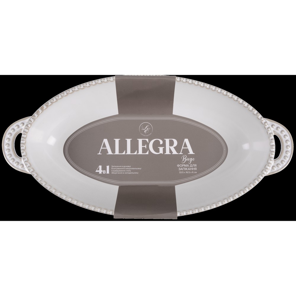 Форма Allegra Biege Розмір: 34×16.5×6 см Матеріал форми: кам’яна кераміка Форма: овальна Колір: бежевийАсортимент ТМ LIMITED EDITION виготовляється ексклюзивно для ЮГ-Контракту з 2015 р. Наші фахівці ретельно відбирають виробників, які створюють товари, наслід…