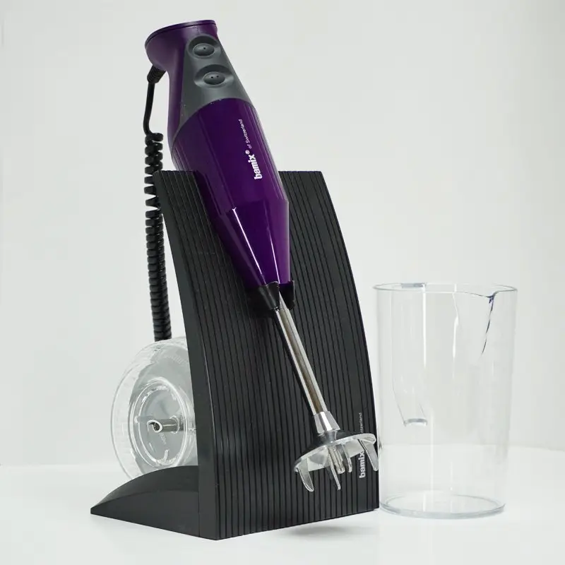 100.495 Блендер Swiss Line бакалажан М250 має вишуканий дизайн та буде гарно виглядати на будь який кухні. Фахівці компанії BAMIX при проектуванні урахували всі запити користувачів та зробили дійсно якісний продукт. Анатомічна конструкція та функціонал спрощує процес користуванням.