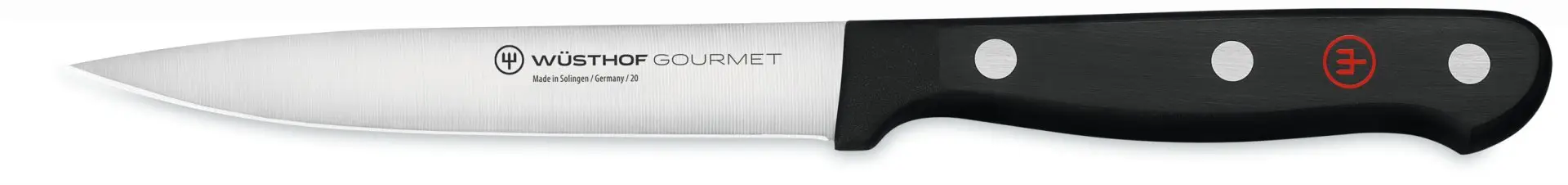 1025048112 ніж універсальний 12 см Wuesthof GOURMET має вишуканий дизайн та буде гарно виглядати на будь який кухні. Фахівці компанії Wusthof при проектуванні урахували всі запити користувачів та зробили дійсно якісний продукт. Анатомічна конструкція та функціонал спрощує процес користуванням.