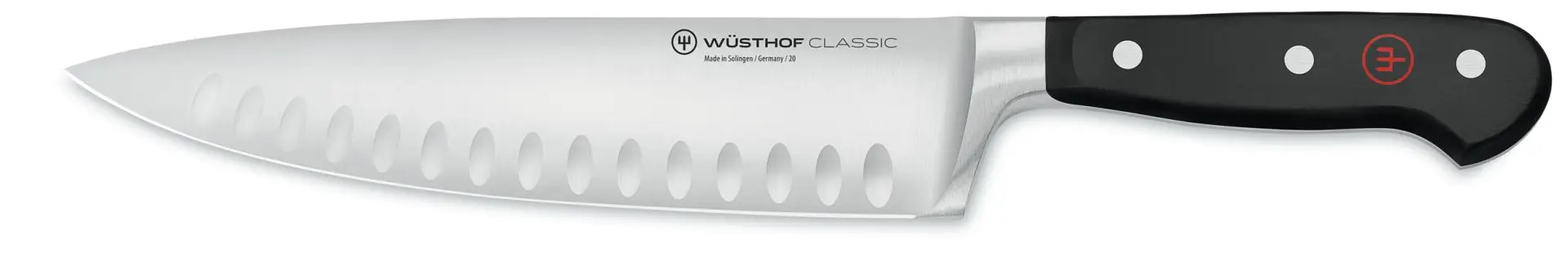 1040100220 ніж шеф-кухаря 20 см у картонній упаковці Wusthof CLASSIC має вишуканий дизайн та буде гарно виглядати на будь який кухні. Фахівці компанії Wusthof при проектуванні урахували всі запити користувачів та зробили дійсно якісний продукт. Анатомічна конструкція та функціонал спрощує процес користуванням.