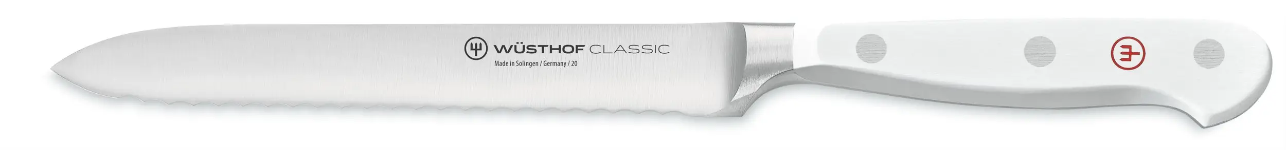 1040201614 ніж для нарізки 14 см у картонній упаковці Wusthof Classic White має вишуканий дизайн та буде гарно виглядати на будь який кухні. Фахівці компанії Wusthof при проектуванні урахували всі запити користувачів та зробили дійсно якісний продукт. Анатомічна конструкція та функціонал спрощує процес користуванням.