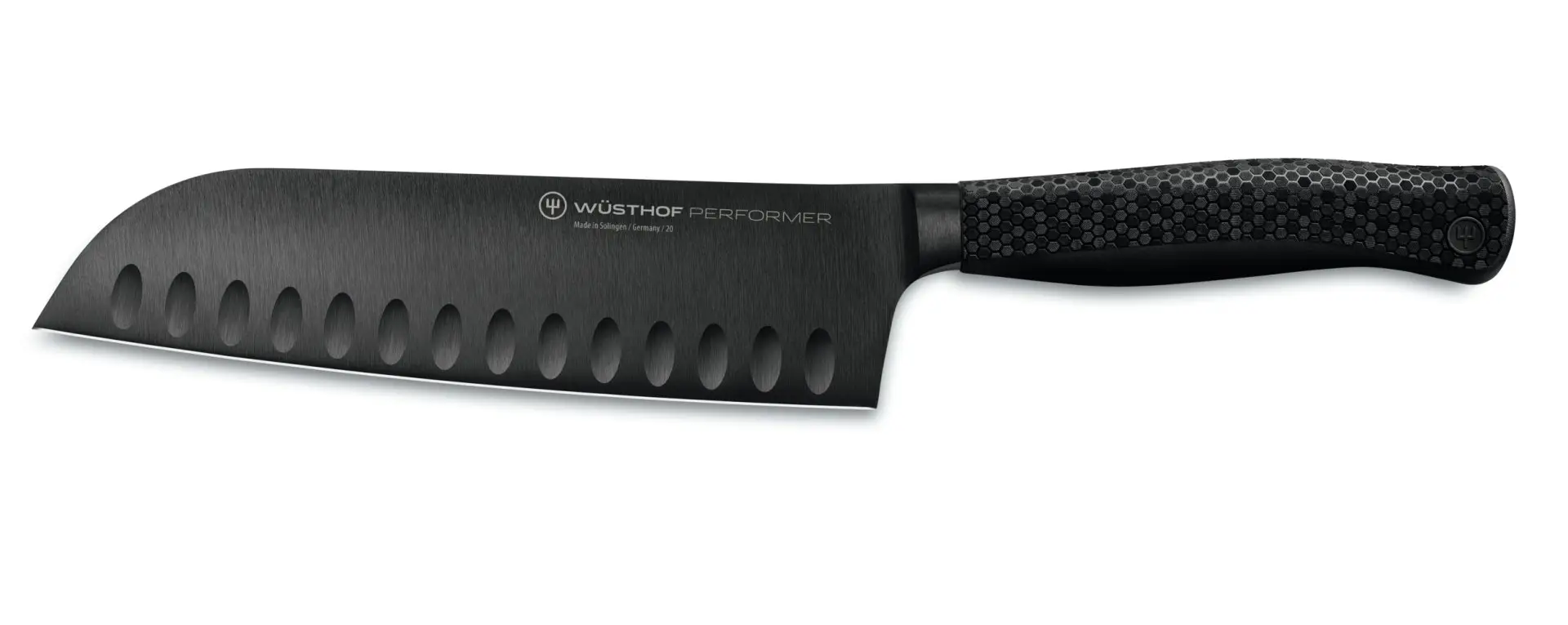 1061231317 ніж сантоку 17 см Wuesthof PERFORMER ЗОЛІНГЕН має вишуканий дизайн та буде гарно виглядати на будь який кухні. Фахівці компанії Wusthof при проектуванні урахували всі запити користувачів та зробили дійсно якісний продукт. Анатомічна конструкція та функціонал спрощує процес користуванням.