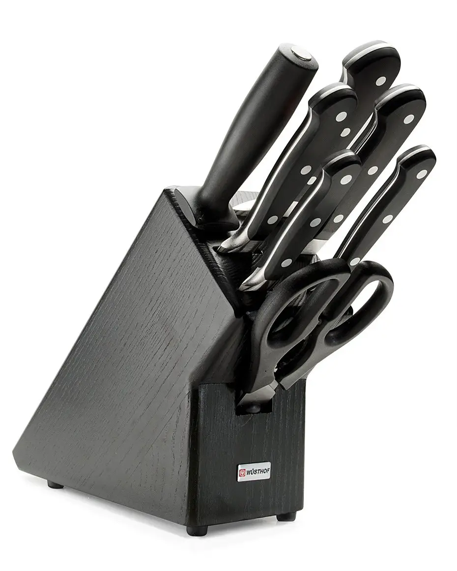 1090170707 блок із ножами, 7 шт. Wuesthof CLASSIC має вишуканий дизайн та буде гарно виглядати на будь який кухні. Фахівці компанії Wusthof при проектуванні урахували всі запити користувачів та зробили дійсно якісний продукт. Анатомічна конструкція та функціонал спрощує процес користуванням.