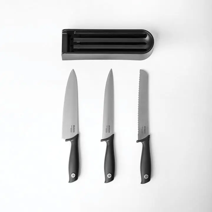 123023 Блок із ножами 3 шт Tasty Colours Brabantia Dark Grey має вишуканий дизайн та буде гарно виглядати на будь який кухні. Фахівці компанії Brabantia при проектуванні урахували всі запити користувачів та зробили дійсно якісний продукт. Анатомічна конструкція та функціонал спрощує процес користуванням.