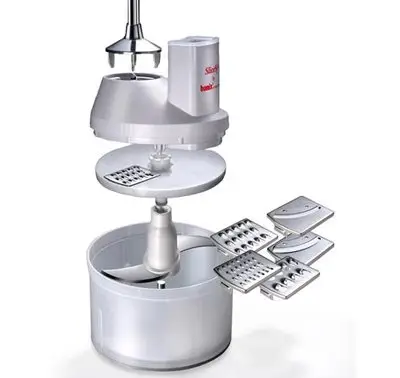 150.074 Bamix Набір насадок для блендера SliceSy білий має вишуканий дизайн та буде гарно виглядати на будь який кухні. Фахівці компанії BAMIX при проектуванні урахували всі запити користувачів та зробили дійсно якісний продукт. Анатомічна конструкція та функціонал спрощує процес користуванням.