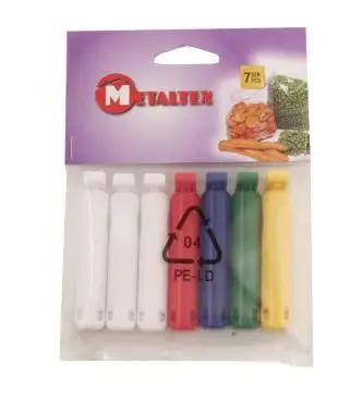 295605 Набір затискачів для сипких 7шт METALTEX має вишуканий дизайн та буде гарно виглядати на будь який кухні. Фахівці компанії Metaltex при проектуванні урахували всі запити користувачів та зробили дійсно якісний продукт. Анатомічна конструкція та функціонал спрощує процес користуванням.