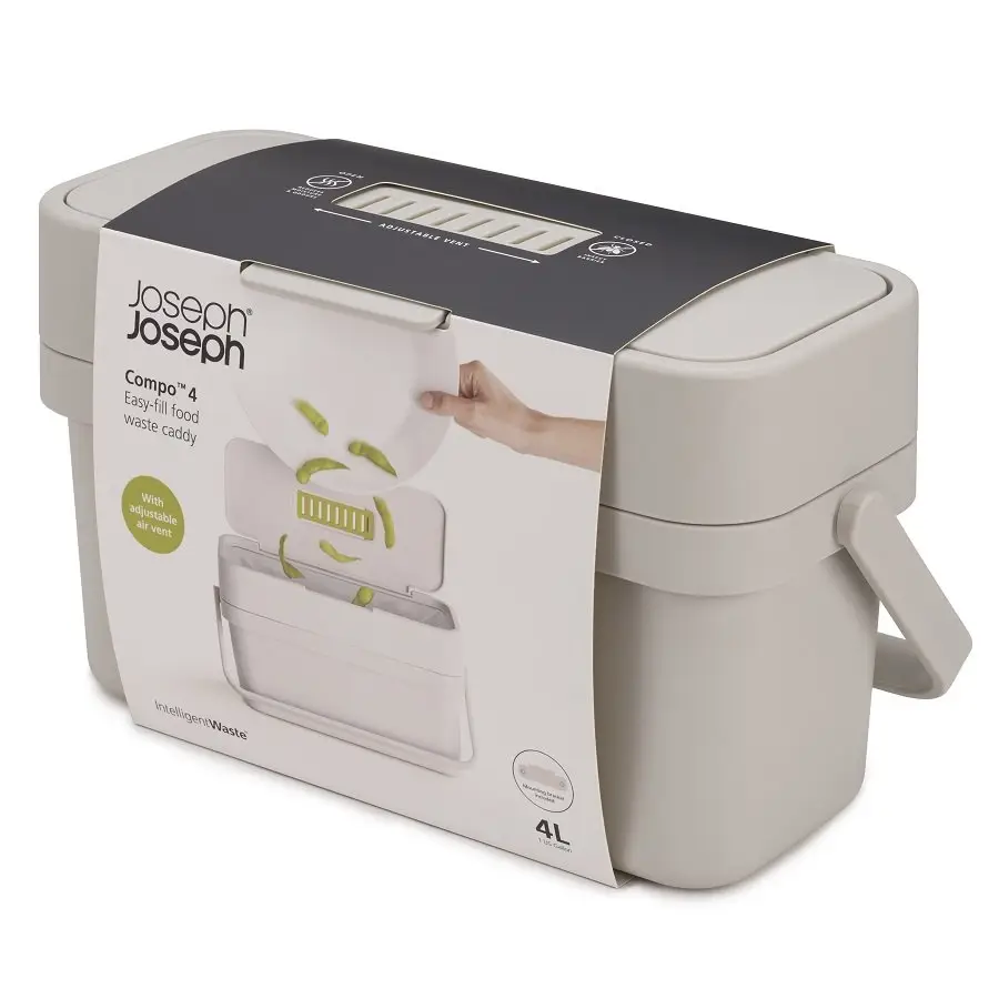 30046 контейнер для харчових відходів 4 л Joseph Joseph COMPO 4 має вишуканий дизайн та буде гарно виглядати на будь який кухні. Фахівці компанії Joseph Joseph при проектуванні урахували всі запити користувачів та зробили дійсно якісний продукт. Анатомічна конструкція та функціонал спрощує процес користуванням.