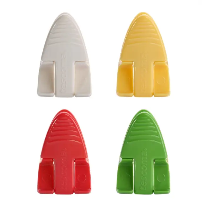 420759 Кліпса для пакетів / сумок PRESTO, 4 шт має вишуканий дизайн та буде гарно виглядати на будь який кухні. Фахівці компанії tescoma при проектуванні урахували всі запити користувачів та зробили дійсно якісний продукт. Анатомічна конструкція та функціонал спрощує процес користуванням.