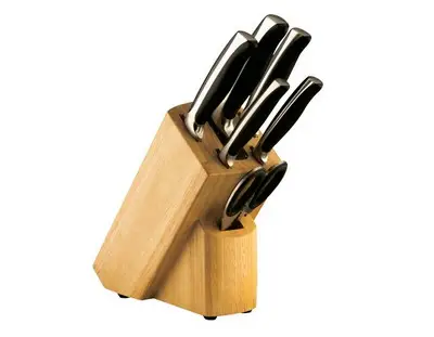 Набір ножів VINZER CHEF має ексклюзивний та елегантний дизайн, виготовлений з високоякісної молібден-ванадієвої сталі 1.4028/X30Cr13. Зручна ергономічна ручка з бакеліту. Ріжуча кромка довго зберігає гостроту завдяки клиноподібному перерізу леза. Підставка виготовлена з високоякісної деревини із вбудованим точилом. Можна мити в посудомийній машині. Набір ножів VINZER CHEF складається з 7 предметів: Ніж кухарський 20,3 см, Ніж для м`яса 20,3 см, Ніж універсальний 12,7 см, Ніж для хліба 20,3 см, Ніж для чищення овочів 7,6 см, Ножиці кухонні , Підставка.