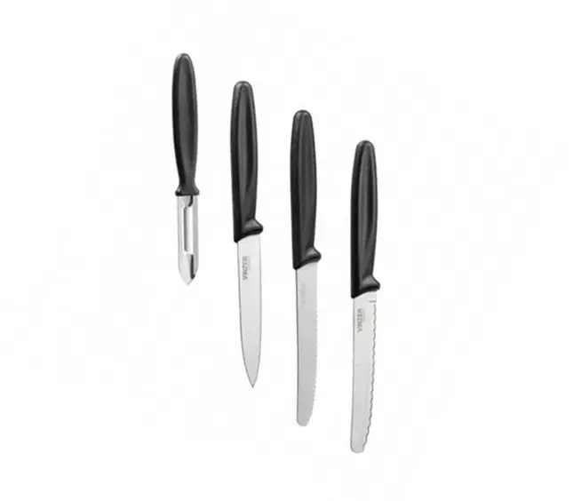 50129 Набір ножів Vegan, пр. 4, 50129, Vinzer Vinzer має вишуканий дизайн та буде гарно виглядати на будь який кухні. Фахівці компанії Vinzer при проектуванні урахували всі запити користувачів та зробили дійсно якісний продукт. Анатомічна конструкція та функціонал спрощує процес користуванням.