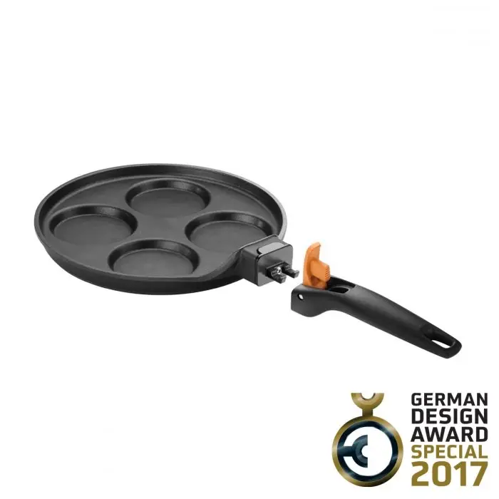 605090 Сковорода SmartCLICK 24 см (4 поглиблення) має вишуканий дизайн та буде гарно виглядати на будь який кухні. Фахівці компанії tescoma при проектуванні урахували всі запити користувачів та зробили дійсно якісний продукт. Анатомічна конструкція та функціонал спрощує процес користуванням.