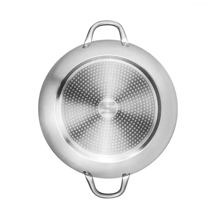606846 Сковорода GrandCHEF 36см, 2 ручки має вишуканий дизайн та буде гарно виглядати на будь який кухні. Фахівці компанії tescoma при проектуванні урахували всі запити користувачів та зробили дійсно якісний продукт. Анатомічна конструкція та функціонал спрощує процес користуванням.