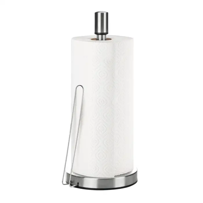 Чудовий для стильного зберігання паперових рушників у рулонах. Виготовлено з першокласної нержавіючої сталі та міцної пластмаси. Забезпечено пружиною, яка притримує вільний кінець рушника. При необхідності протріть вологим рушником і витріть насухо. Не можна мити в посудомийній машині. 5 років. Паперові рушники не входять до комплекту виробу