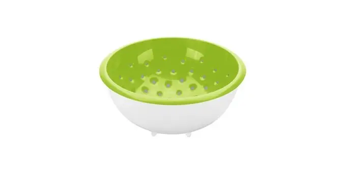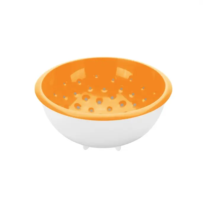 Відмінно підходить для ополіскування фруктів та овочів під проточною водою та для їх сервірування, залишки води з промитих продуктів стічуть у чашку. Обидві ємності можна використовувати окремо, чашку для приготування та подачі на стіл салатів або сервірування фруктів, друшляк для зціджування відварених макаронних виробів, картоплі тощо. Виготовлено з високоякісної міцної пластмаси, придатне для холодильника та посудомийної машини.