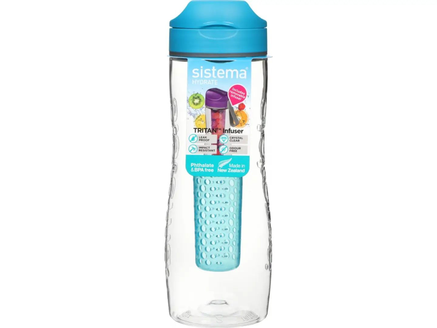 660-7 turquoise Пляшка для води з тритану з дифузором, 800 мл Sistema має вишуканий дизайн та буде гарно виглядати на будь який кухні. Фахівці компанії Sistema при проектуванні урахували всі запити користувачів та зробили дійсно якісний продукт. Анатомічна конструкція та функціонал спрощує процес користуванням.