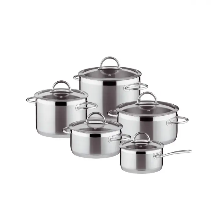 726010 Набір посуду VISION, 10 предметів, нерж. 18/10 tescoma має вишуканий дизайн та буде гарно виглядати на будь який кухні. Фахівці компанії tescoma при проектуванні урахували всі запити користувачів та зробили дійсно якісний продукт. Анатомічна конструкція та функціонал спрощує процес користуванням.