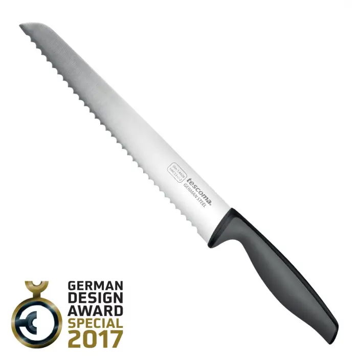 881250 Ніж хлібний PRECIOSO 20 см Tescoma має вишуканий дизайн та буде гарно виглядати на будь який кухні. Фахівці компанії tescoma при проектуванні урахували всі запити користувачів та зробили дійсно якісний продукт. Анатомічна конструкція та функціонал спрощує процес користуванням.