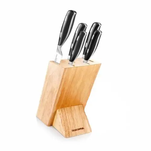 884640 Блок для ножів GrandCHEF, з 5 ножами Tescoma має вишуканий дизайн та буде гарно виглядати на будь який кухні. Фахівці компанії tescoma при проектуванні урахували всі запити користувачів та зробили дійсно якісний продукт. Анатомічна конструкція та функціонал спрощує процес користуванням.