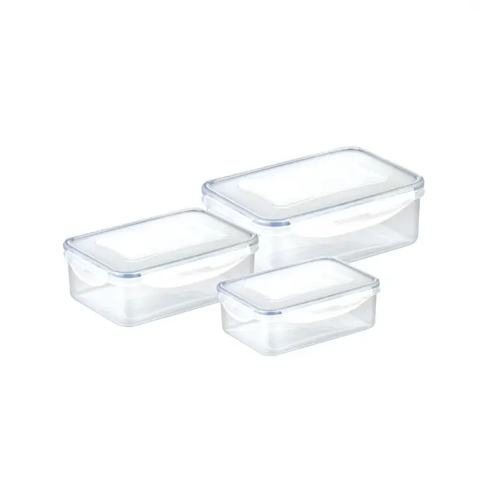 892090 Контейнер FRESHBOX 3 шт, 0,2, 0,5, 1,0 л, прямокутний має вишуканий дизайн та буде гарно виглядати на будь який кухні. Фахівці компанії tescoma при проектуванні урахували всі запити користувачів та зробили дійсно якісний продукт. Анатомічна конструкція та функціонал спрощує процес користуванням.