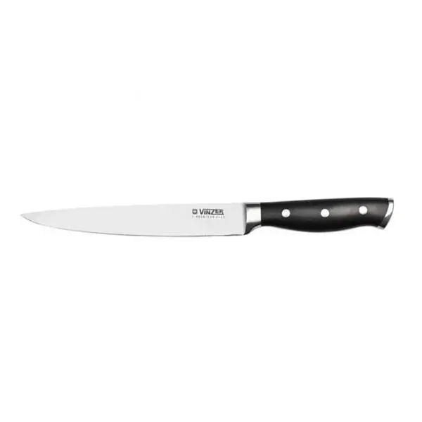 89283 Ніж для м`яса 20,3 см Vinzer має вишуканий дизайн та буде гарно виглядати на будь який кухні. Фахівці компанії Vinzer при проектуванні урахували всі запити користувачів та зробили дійсно якісний продукт. Анатомічна конструкція та функціонал спрощує процес користуванням.