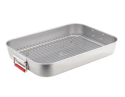 Форма для запікання з решіткою VINZER 89490 має практичний дизайн, зроблена з легкої та міцної вуглецевої сталі з надійним високоякісним антипригарним покриттям Xylan, легка у догляді. Зручні силіконові ручки, що не нагріваються. Знімні грати для запікання. Використовується у духовці до 230 °C. Дозволяється мити в посудомийній машині, але не рекомендується.