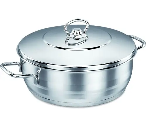 Діаметр: 26 см. Висота: 10 см. Об`єм: 5,3 л. Матеріал: нержавіюча сталь 18/10. Дно : потрійне інкапсульоване. Підходить для всіх видів плит. Можна мити в посудомийній машині.