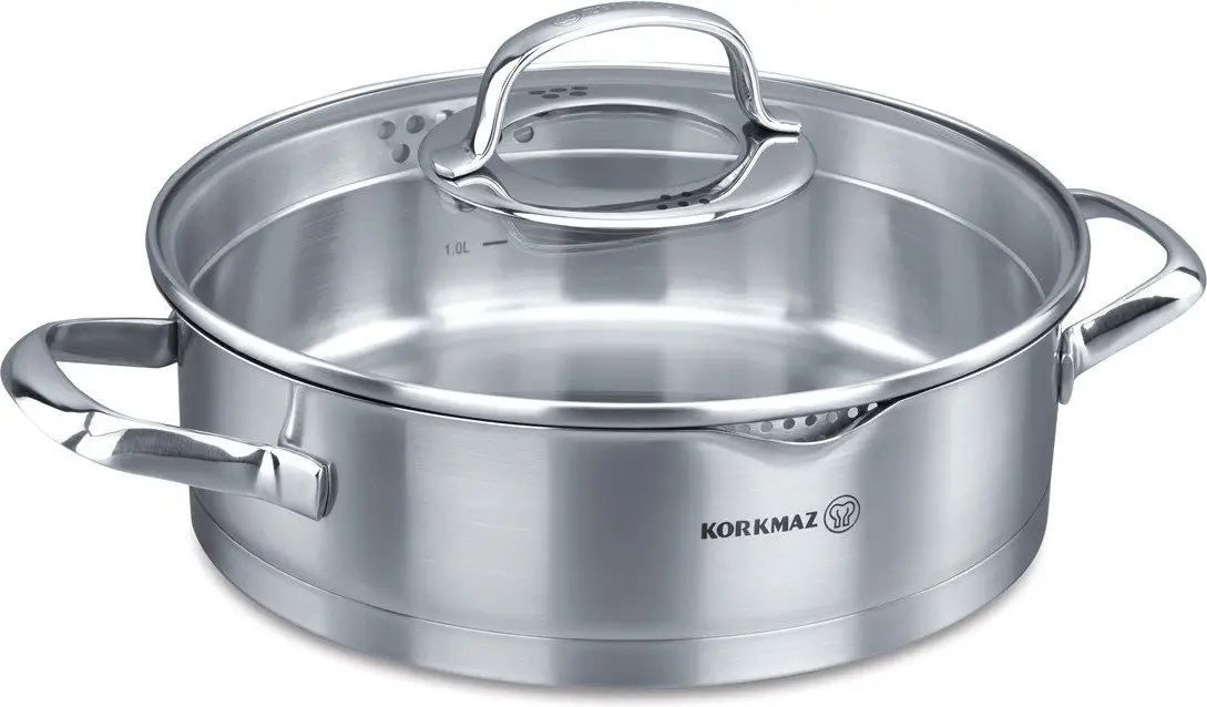 Діаметр: 24 см. Висота: 7 см. Об`єм: 3 л. Матеріал: нержавіюча сталь 18/10. Кришка: жароміцне скло. Кріплення ручок: точкове зварювання. Підходить для всіх видів плит. Можна мити в посудомийній машині.