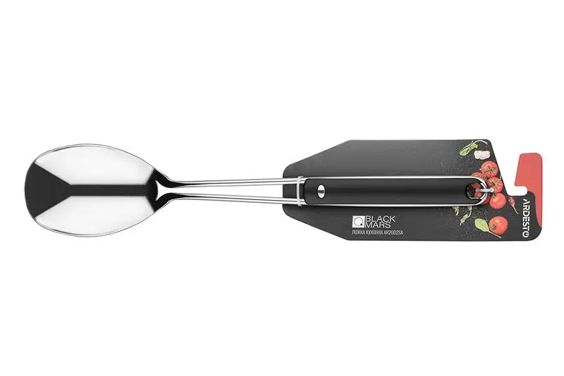 AR2002SA Ложка кухонна Ardesto Black Mars, пластик, нержавіюча сталь має вишуканий дизайн та буде гарно виглядати на будь який кухні. Фахівці компанії ARDESTO при проектуванні урахували всі запити користувачів та зробили дійсно якісний продукт. Анатомічна конструкція та функціонал спрощує процес користуванням.