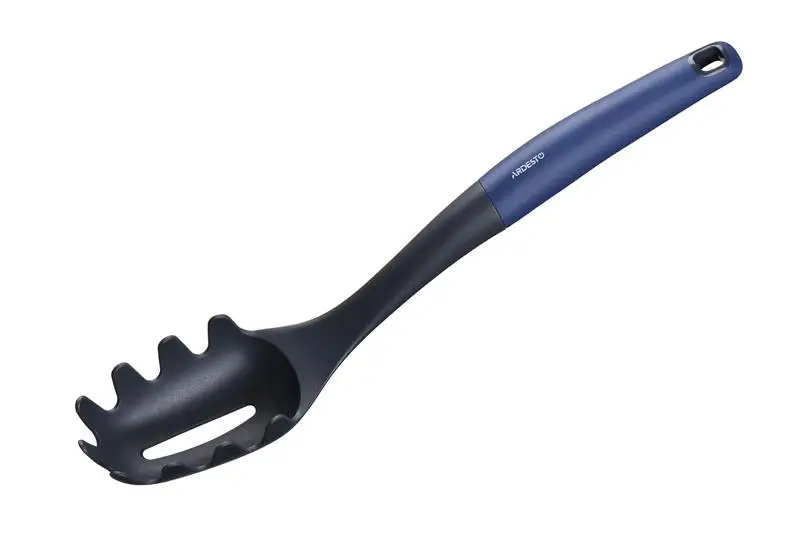 AR2107PB Ложка для спагетті Ardesto Gemini, сірий/синій, нейлон, пластик із софт тач має вишуканий дизайн та буде гарно виглядати на будь який кухні. Фахівці компанії ARDESTO при проектуванні урахували всі запити користувачів та зробили дійсно якісний продукт. Анатомічна конструкція та функціонал спрощує процес користуванням.