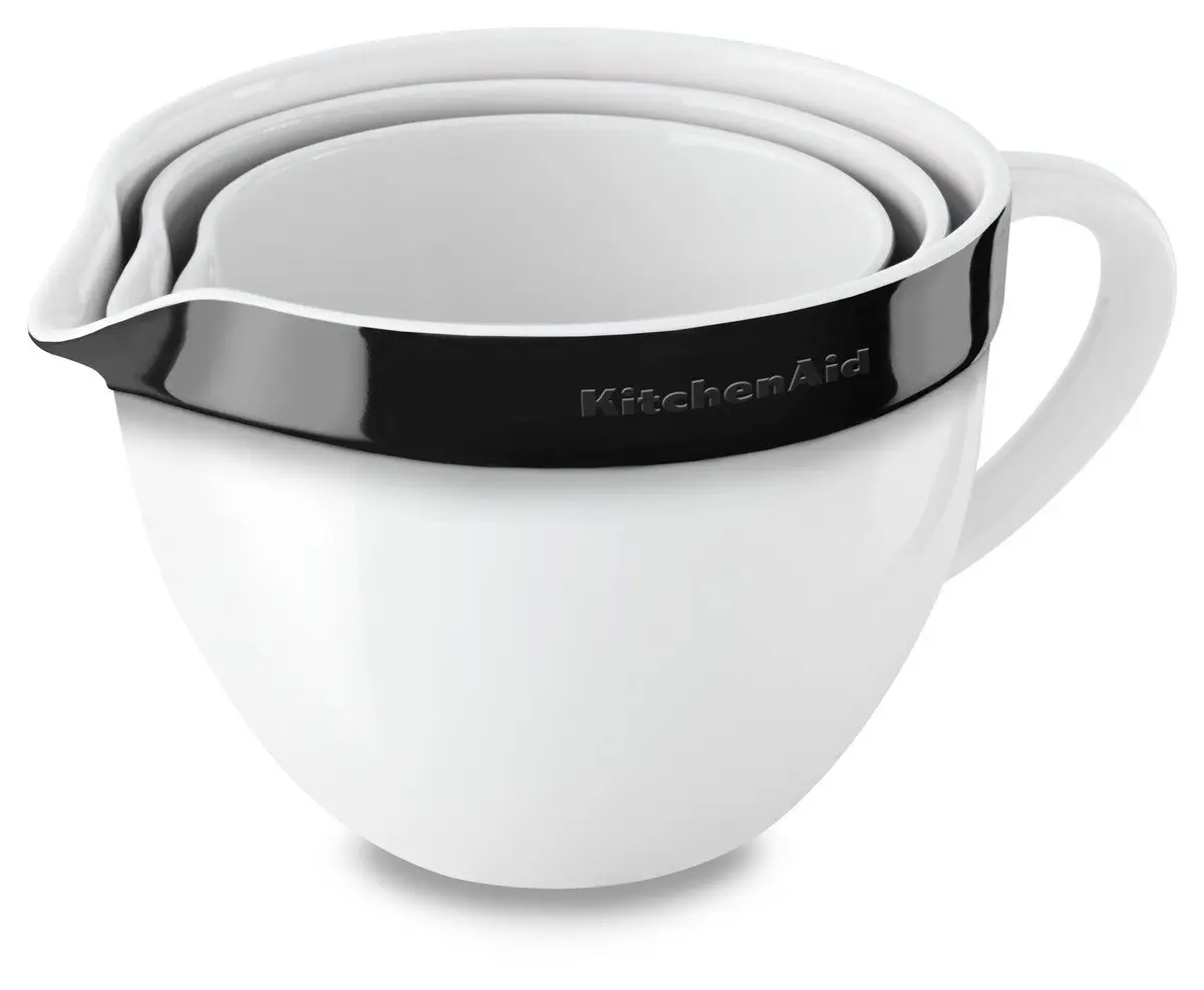 KBLR03NBOB KitchenAid 3 чаші для змішування 0,75 л (14 см), 1,25 л (16 см), 2 л (18,5 см) Чорний має вишуканий дизайн та буде гарно виглядати на будь який кухні. Фахівці компанії KitchenAid при проектуванні урахували всі запити користувачів та зробили дійсно якісний продукт. Анатомічна конструкція та функціонал спрощує процес користуванням.