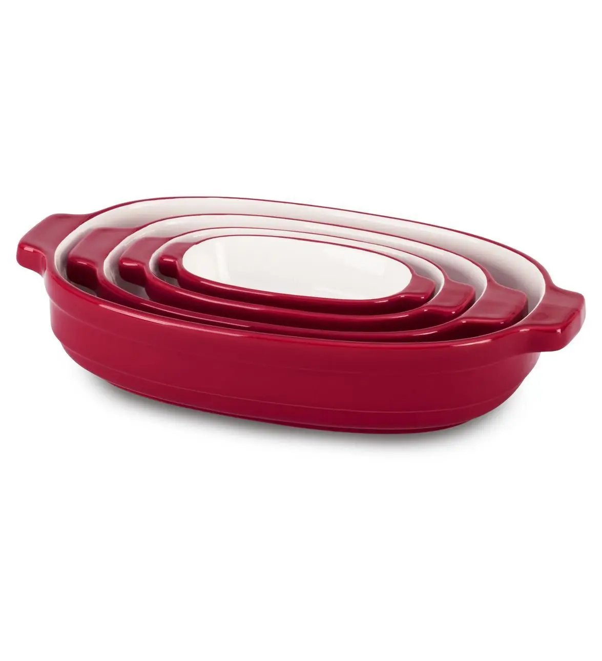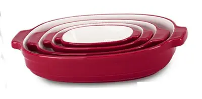 Матеріал: кераміка. Колір: червоний. У наборі: 4 каструлі об`ємом 0,5 л, 0,9 л, 1,8 л, 3,3 л. br /> Можна мити в посудомийній машині, використовувати в мікрохвильовій печі і поміщати в морозильну камеру. Виробник: KitchenAid. Країна виробник: США.